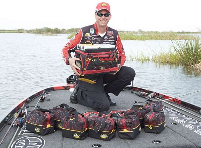 Soft plastic baits are a source of tackle confusion within the boats of many bass fishermen. VanDam ensures he’s not overwhelmed: “I carry plastics by category in Plano Speedbags,” he said, explaining that flipping baits are separated from those used for Carolina rigging or dropshotting. “I only carry a few colors of each, and enough to last one day on the water.” From there, VanDam simply restocks each evening from the mobile system aboard his Toyota tow vehicle.