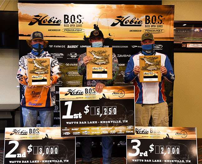 That’s for sure, and no one accomplished more than Hobie T.O.C. Reigning Grand Champion, Ryan Lambert. With a 74-inch haul of largemouth bass on Day 1, followed by 77 inches of bass on Day 2, the Jasper, Tennessee, resident filled his daily limits to edge out runner-up Ewing Minor of Charlottesville, Virginia, 151 inches to 149.25 inches. Kurt Smits from Cincinnati, Ohio, drilled 148-inches of bass to take the third slot. All three anglers filled their limits both days, the only anglers to do so in the tournament. For Lambert, this was win number two against no losses in national-level bass fishing competition in the Knoxville area as he won the 2020 T.O.C. last November just a few miles upstream on the Tennessee River. Interestingly, it was only his second time fishing at Watts Bar Lake, the first being a one-day visit six years ago.