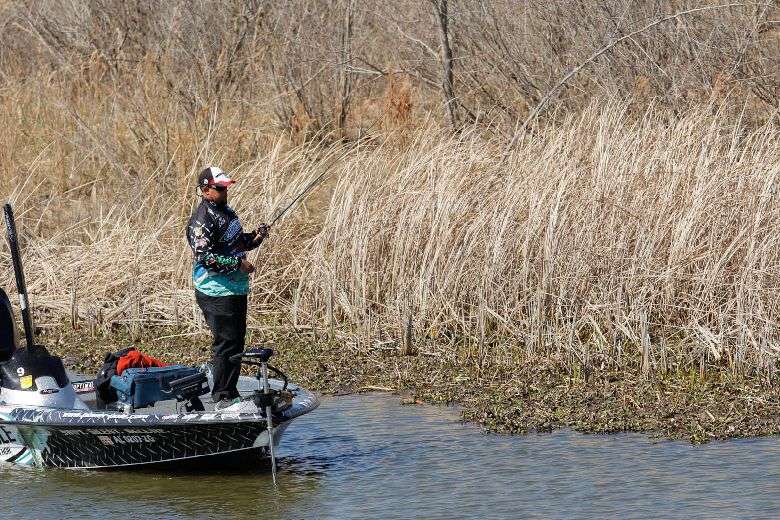 He started the final day in a backwater pond with both Bill Lowen and Matt Reed and hoped to leave with a limit no later than 11:30. Early on, the other two anglers scored while Lane looked on sheepishly.