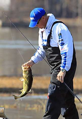 Drawing upon his vast Lay Lake experience — one year he fished 70 tournaments there — Lane knew that, after a practice period that brought record low lake temperatures, the weekend's warming trend would ignite a particular area.