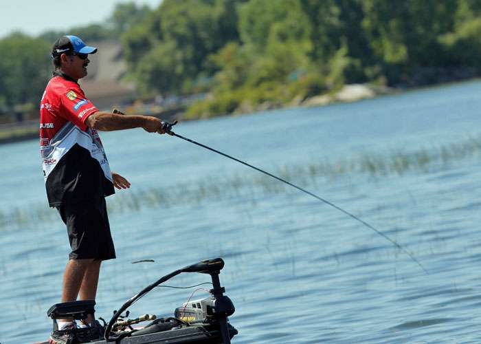 “You know, at the end of last year I was watching The Bassmasters on TV and watching those guys in LaCrosse on the Mississippi River flipping, frogging and power fishing shallow. That’s my kind of fishing!” he said. “But I listened to the dock talk and went after what I thought I should be doing, which was fishing out deep. Of course, hindsight is 20/20, but that really ate me up watching those guys catch ’em how I like. I’m not saying I would have fared better if I had fished my strengths, but I know I wouldn’t have done any worse and I would’ve enjoyed it more.”