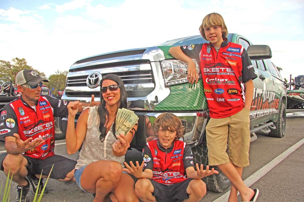 Marty’s recent third place finish at the Bassmatser Elite Series event on the St. Johns River made Mrs. Robinson and her boys feel like winners when they realized his high finish netted $3,000 in Bonus Bucks – and Mom was quick to grab the ‘bucks.’