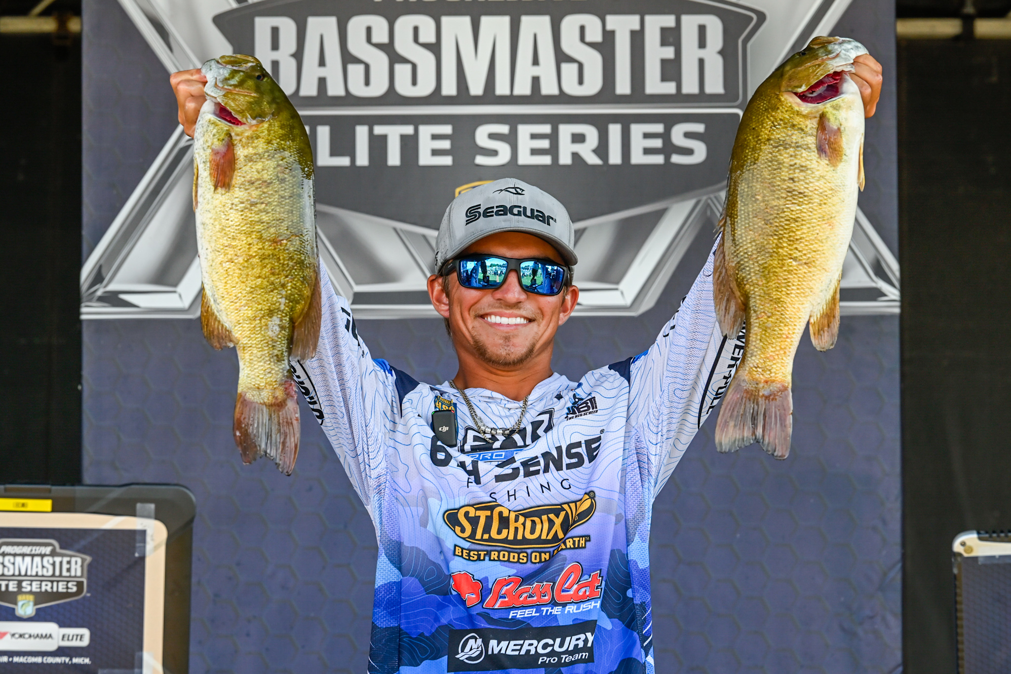 “I didn’t expect this at all. I caught a giant yesterday, a 5 1/2, and that was the biggest one I had caught out here,” the Progressive Bassmaster Elite Series rookie said. “I was just excited to have two 5-pounders today and then I caught three more. It was just mind-blowing today.”