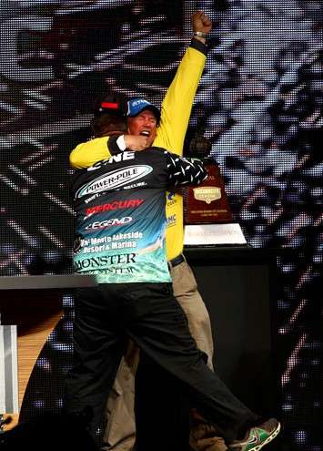 By Day Four, even though a who’s who of pros (e.g., KVD, Skeet Reese, Kelly Jordon, Gerald Swindle) still mathematically had a shot to win, the possibility that Lane would be overtaken seemed unlikely. Chris Lane had missed the cut, finishing 59th, but he stayed in Tennessee to root on his brother. As the final twelve queued up to weigh in I cornered Chris backstage and asked him questions similar to those I asked Bobby three years later. What will this mean to your brother’s career? What will it mean to your family? Does he have to buy dinner tonight?