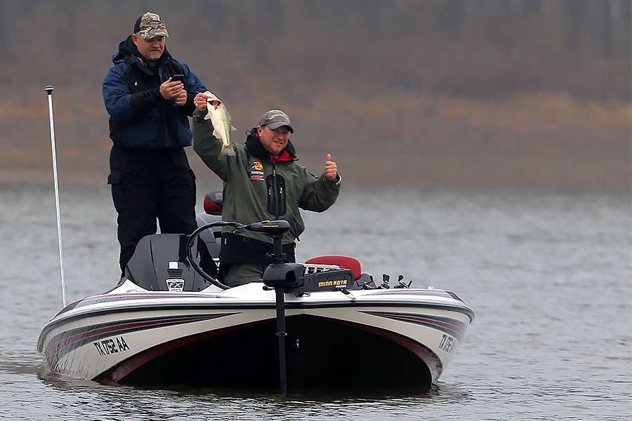 He caught most of his fish both days on a 1/2-ounce jigging spoon and drop-shotted a Senko for a few of his keepers.
