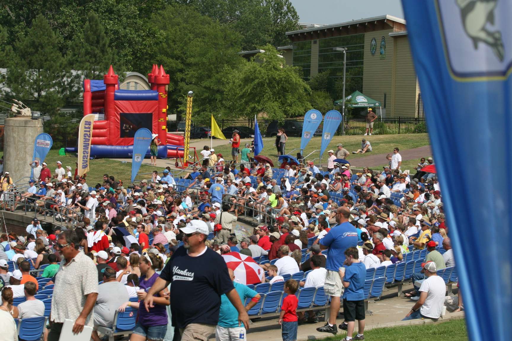 I decide against going to the ledge of one of the tall Little Rock buildings, and the first day of the event is kind of uneventful. Fishing is tough, but we knew that would be the case. The weigh-in crowds were small and we expected that as well. Gosh, it was 300 degrees at weigh-in time. What should we expect?