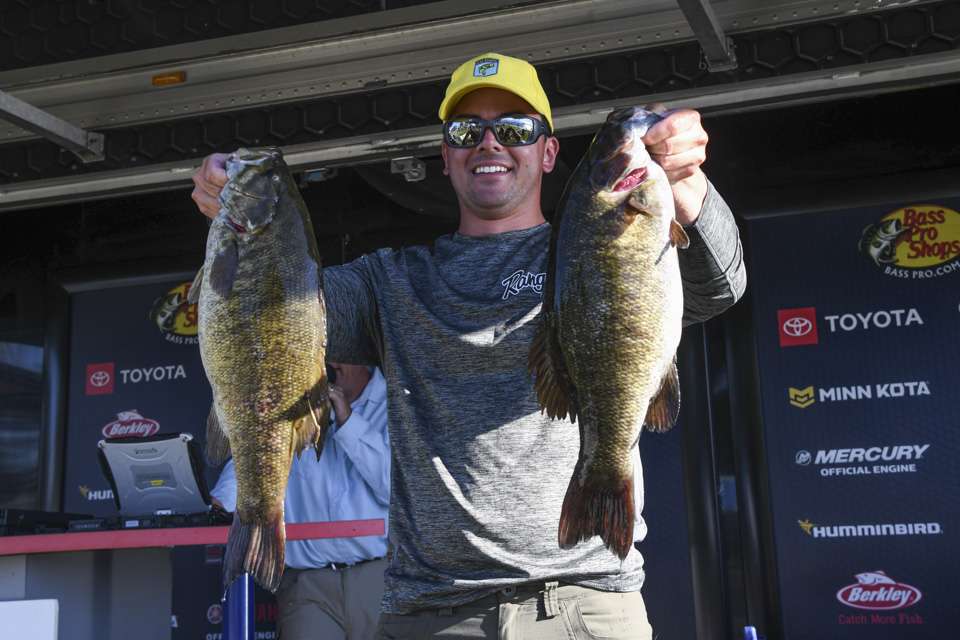Climpson, Brock Belik of Orchard, Neb., and Chris Hellebuyck of Waterford, Mich., share the lead for Phoenix Boats Big Bass honors. Each angler caught a 6-9 smallmouth.