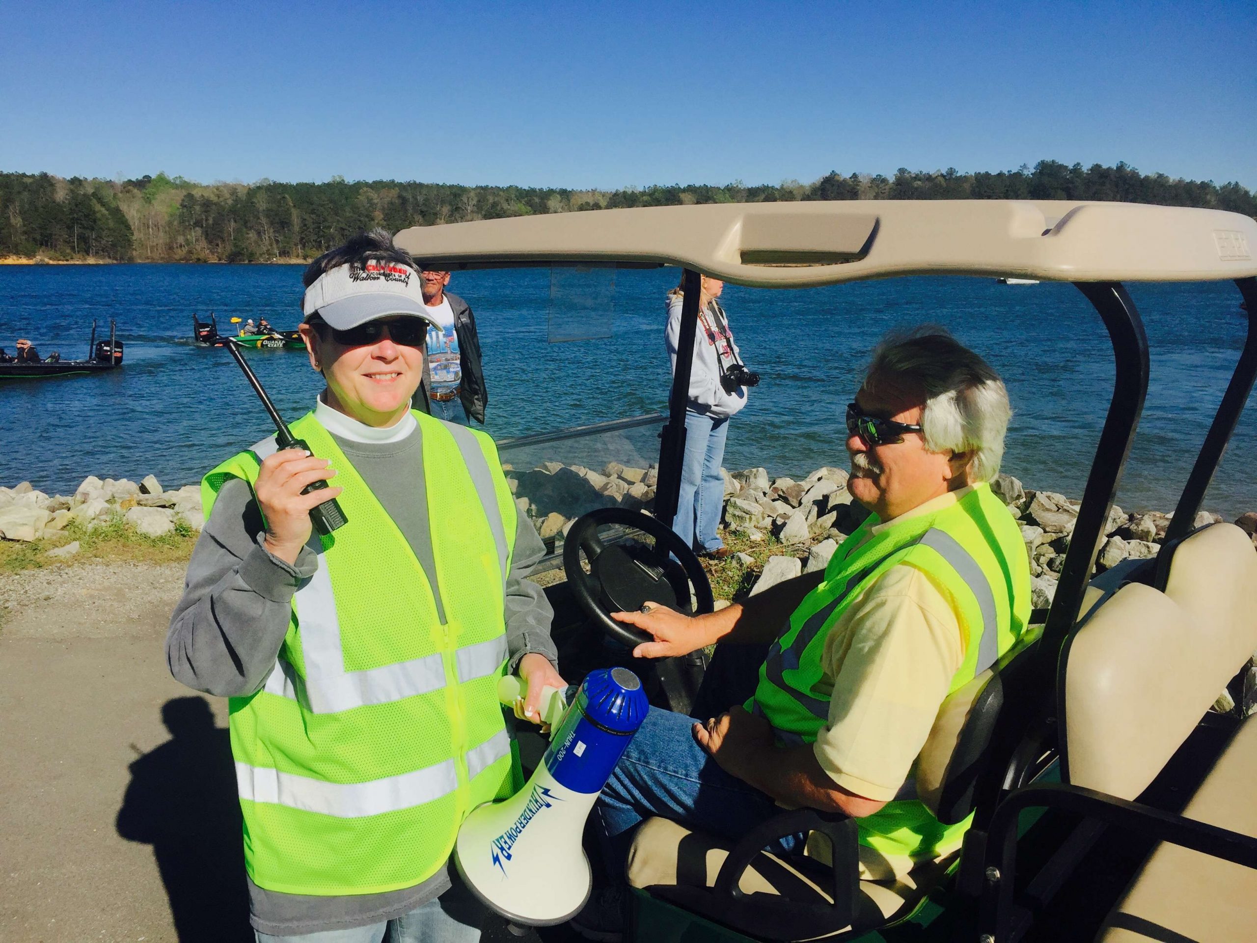 Deputies from the Walker County Sheriff helped organize two lanes of traffic merged into two launch ramps. Pros idled to the dock while co-anglers parked vehicles. Golf carts, 10 in all, transported the drivers to the awaiting pros. The reverse process happened at weigh-in. Anybody needing a lift from the spectator lots to the weigh-in was greeted with a smile and free ride.
