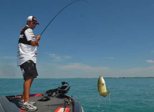 At St. Clair, he relied on a Yum Tube and a Carolina rigged Yum Zellamander to carry him to victory. While practicing for the event, he narrowed down a square mile of patchy vegetation to a key spot the size of a house that held a mother lode of heavy brown bass.