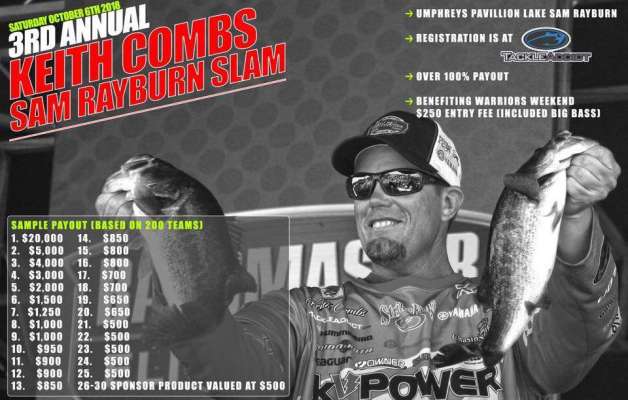Bassmaster Elite Series pro Keith Combs is excited to announce the 3rd Annual Keith Combs Sam Rayburn Slam. The tournament will be held Oct. 6, 2018, at Umphrey Pavilion on...