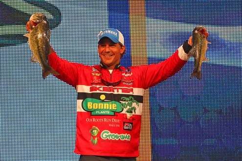 A 6-pound, 4-ounce bass weighed Saturday by Edwin Evers of Talala, Okla., proved to be the day’s largest fish, but it was not big enough to knock out Keith Poche’s 6-pound, 13-ounce bass from Friday as the largest so far. If no one beats 6-13, Poche would win the Carhartt Big Bass award of the Classic.