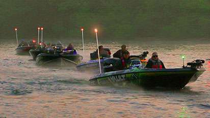 The forecasted wind —10-20 mph out of the north — hadn't materialized at quite that strenth at the launch, setting up a good scenario for guys like Gerald Swindle (fifth place, 17-02). He indicated that a topwater pattern will likely play a significant role in his quest to get in the top 12, where the tournament will essentially start over on Lake Townsend with zeroed weights.