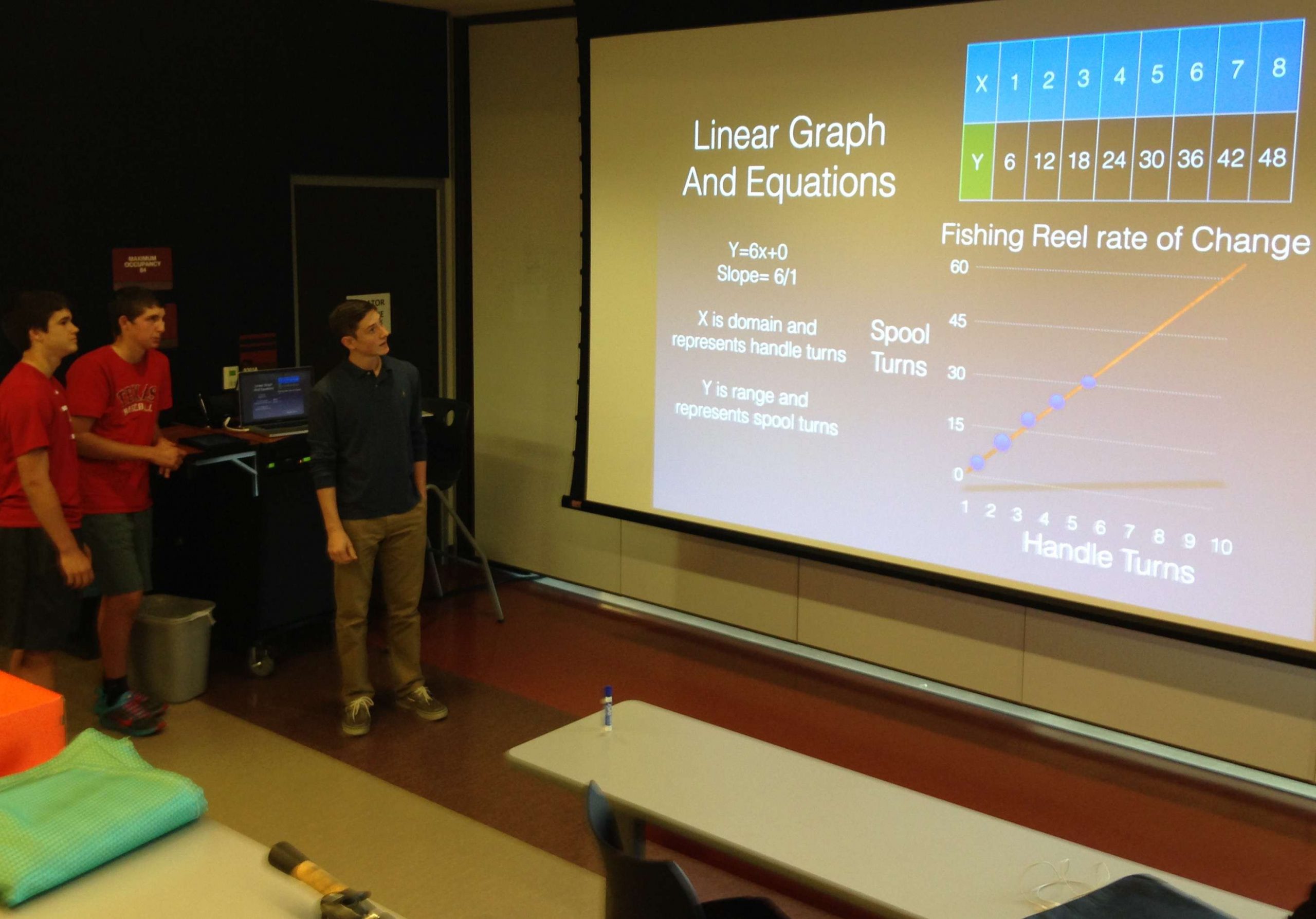“The kids then graph that speed of one reel with a certain gear ratio and graph another one with a higher gear ratio,” Schwolert continued. “That lets them understand what slope and the steepness of the line are. If you put two reels side by side and graph the slope of a 4.1:1 reel against an 8.1:1 reel, those lines would look very different on a coordinate plane.”