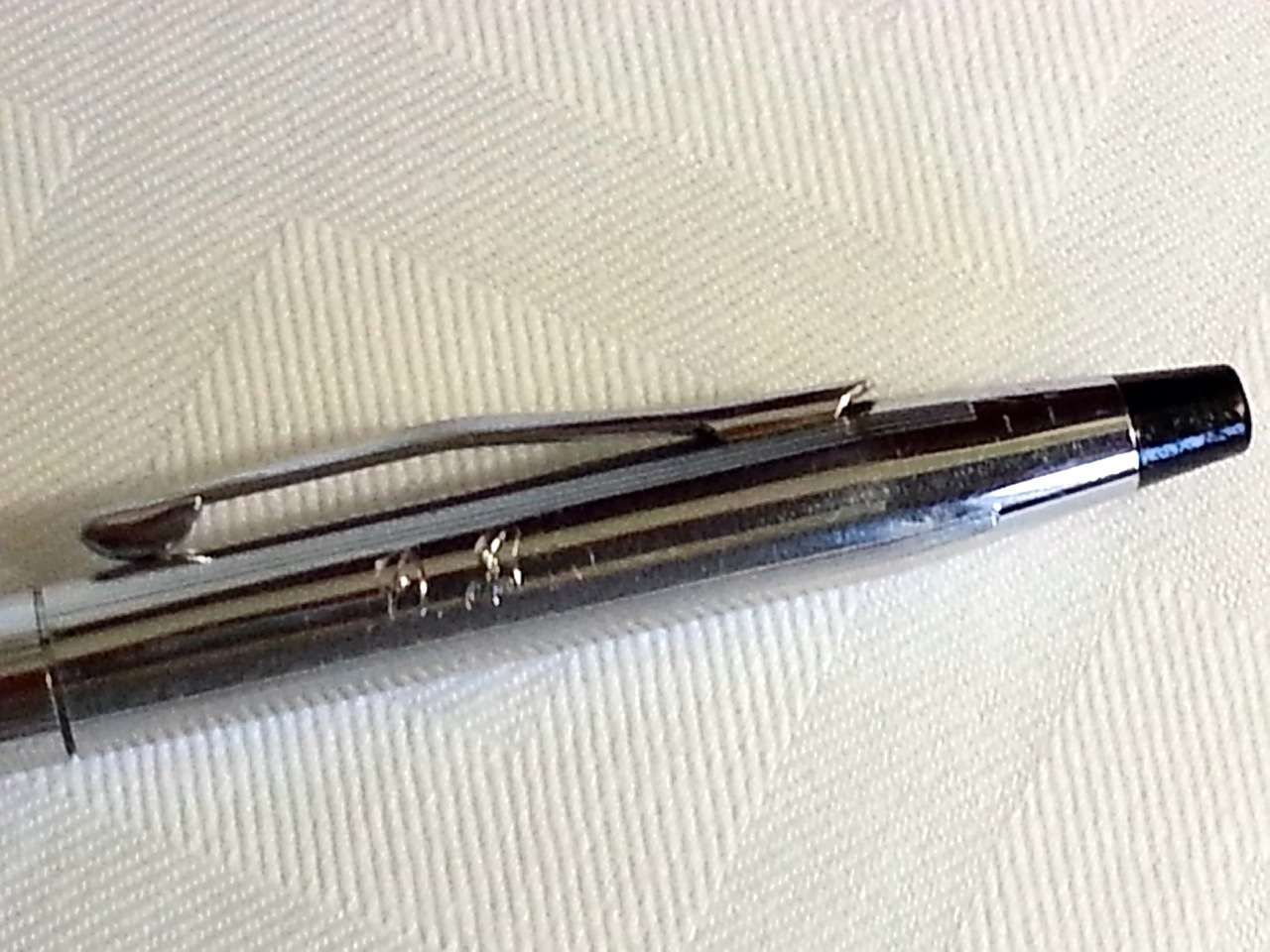 This pen, this silver Cross pen, this pen with the initials D. B. engraved on it, this writing instrument,