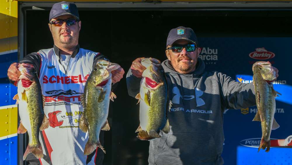 Schlapper and Rickey, who fish with the Major League Series back in Wisconsin, are 10 ounces ahead of the Anglers Choice team of Virginia’s William Samples and North Carolina’s Charles Purcell, who are second with 21-9. Brothers Travis and Shannon O’Quinn of Team Morristown Marine are in third place with 20-8; Eddie Levin and Ryan Mallory of the Ohio B.A.S.S. Nation Team Trail are fourth (20-6); and Dean Alexander and Tom Martens of the Texas Bass Nation Team Trail are fifth (19-15.)