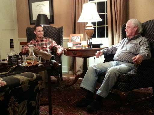 John sat in a chair to my left front, Bill in a chair to my right front, me I was sitting on a blue couch, coffee table in front of me, fire roaring in the fireplace to my left, a bust of JFK in the mantle behind me, decanter of fine bourbon in front of me caught the licks of light from the fireplace in the cut glass.