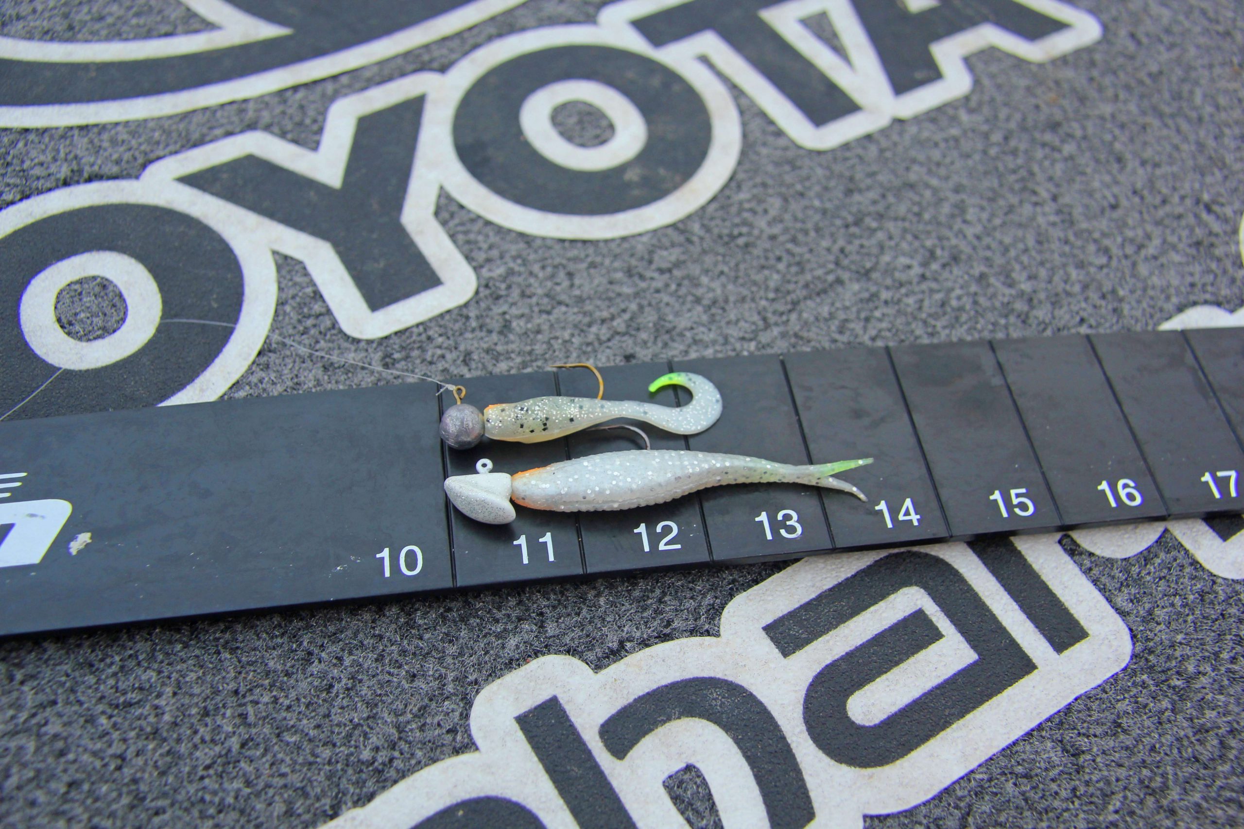 “I had everything in my bag from tiny little 1/8 ounce marabou jigs to curly tail grubs, and all shapes and weights of jig heads,” says Scroggins.