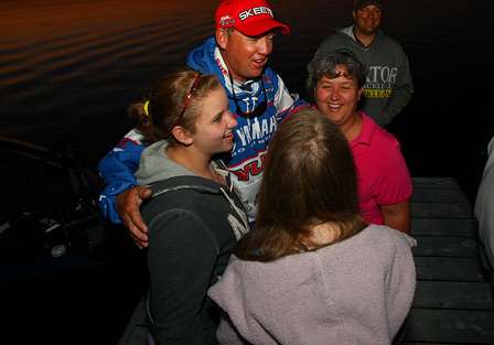 This gives me a lot of confidence going into the next event and makes me want to bear down, work hard and do everything I can to retain my lead in the Angler of the Year race. While leading AOY is great, the best part of the week was having my family — Jimmye Sue, Kristen and Jamie — there at the dock for both launch and weigh-in. They're like any kids whose father goes to work — they don't care how Dad did at work, they're just glad that he's back. They add such a positive dynamic to my fishing. It's great, and I love them very much and appreciate their support.