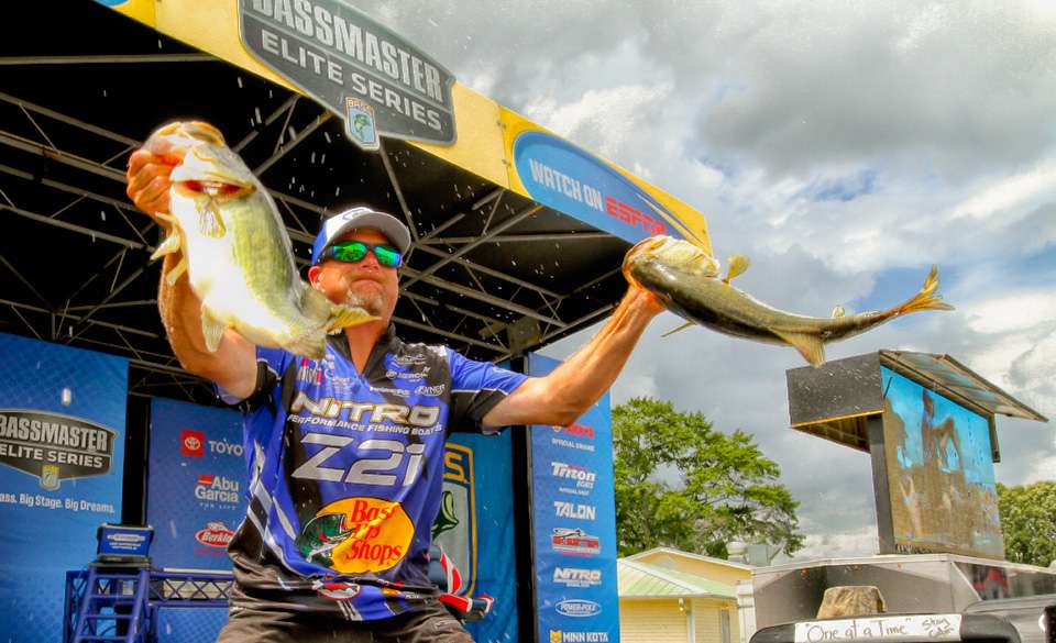 “Every time I threw in that one little sweet spot, I was getting a hit,” Hartman said. “He hit right where he was supposed to. The whole fish came out of the water. I barely pricked him. The lure came at me about 10 yards. I turned to my (Bassmaster LIVE) cameraman and said, ‘Dang it.’ As I did, I twitched it again, and the 6-pounder creamed it. It wasn’t the same fish.”