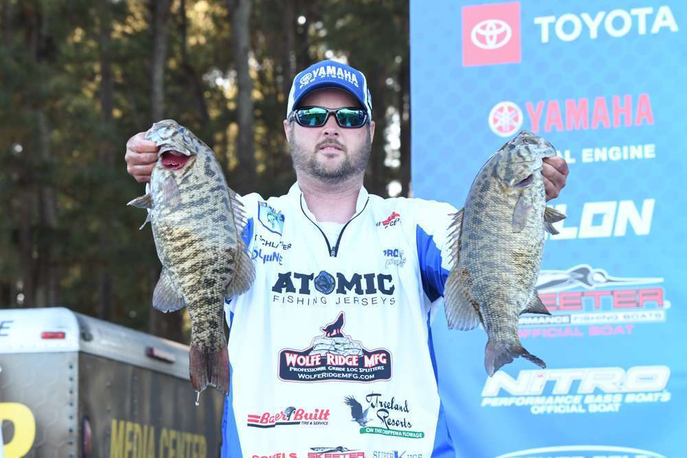 After catching a combined 28 pounds, 7 ounces the first two days of the event, Schlapper was struggling with what he called the heaviest current he’d ever fished. He nabbed his Classic-maker while working his way down to a planned fishing spot; a course during which a random cast yielded a 12-inch smallmouth whose impact far exceeded its dimensions.