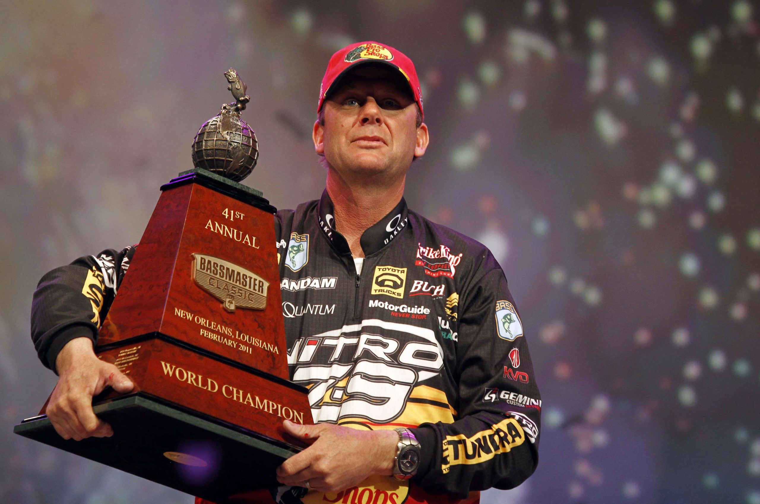 KVD shines at 2011 Bassmaster Classic: On Feb. 20, 2011, on the Louisiana Delta, Kevin VanDam rewrote several records when he won the Classic for the fourth time. He not only tied Rick Clunn’s record for number of wins, VanDam also matched Clunn’s claim as the only angler to take back-to-back Classic wins (Clunn in 1976-1977, VanDam in 2010-2011). VanDam also busted the Classic weight record with his three-day haul of 69 pounds, 11 ounces; surpassed the $5 million mark in Bassmaster career earnings; and repeated his feat of holding the sport’s top two titles concurrently: Bassmaster Classic champ while being the reigning Toyota Tundra Bassmaster Angler of the Year.