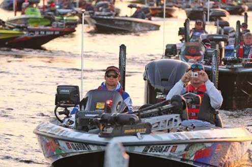 Chris Lane: "Over. The winds will cause the fish to group up a little bit. I think the guy that makes the right decisions to hit the milk runs can bust 25 pounds or more real quick."