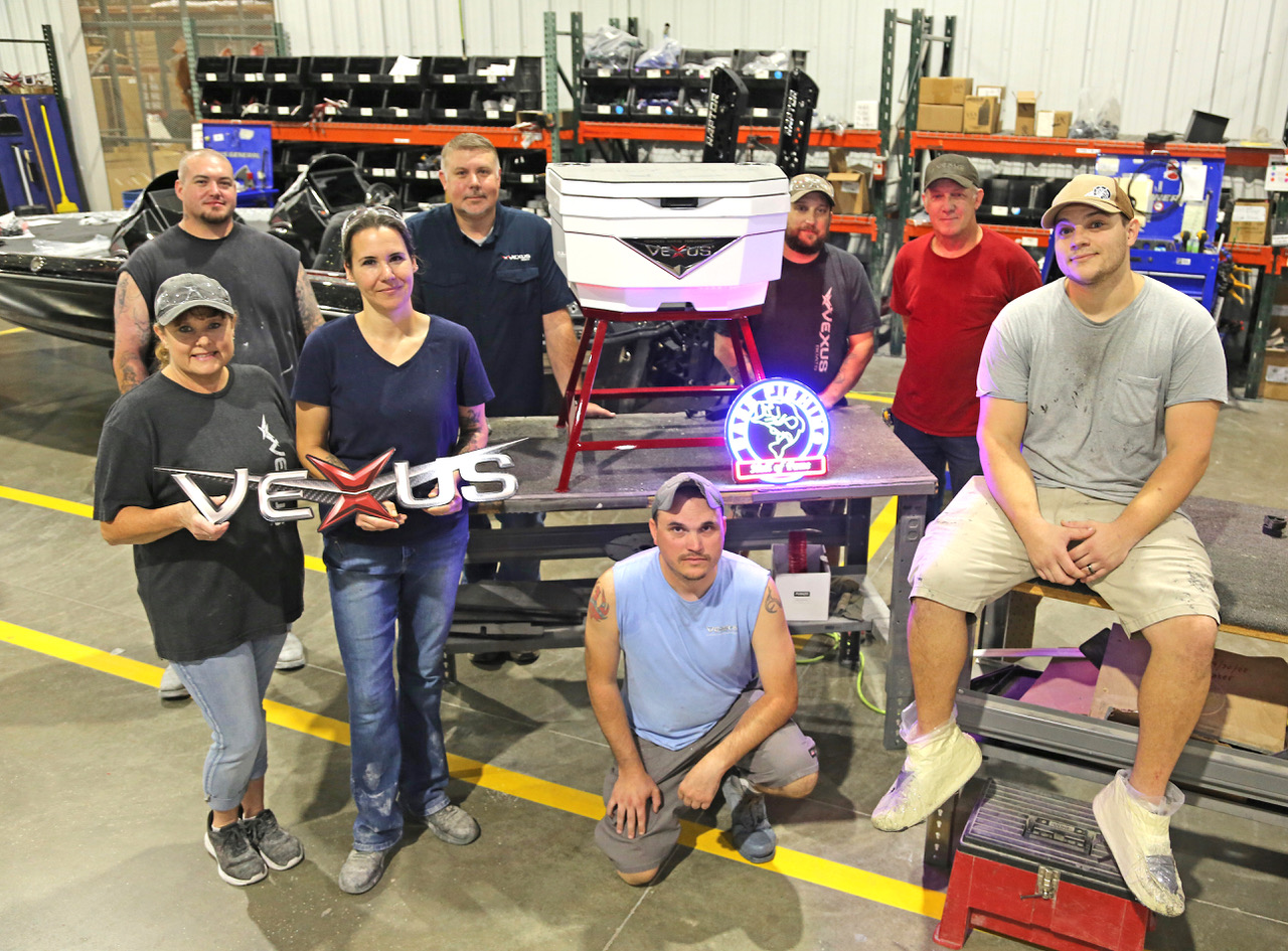 So, when the Bass Fishing Hall of Fame asked them to donate a unique item to the Hall’s annual fundraising auction, a group of skilled Vexus® Boats employees jumped at the chance to build a one-of-a-kind cooler, that one winning bidder can proudly utilize in their boat garage, or on their back porch.