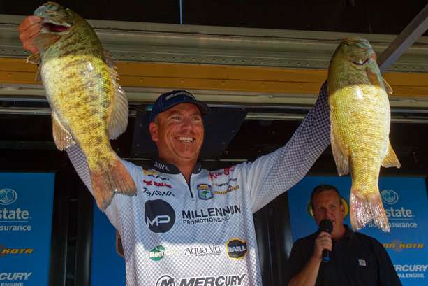 Fellow Michigan angler Chad Pipkens, anchored in second place with 43 pounds, 10 ounces, expects the wind change to benefit him greatly and give him more time to fish his most productive area.