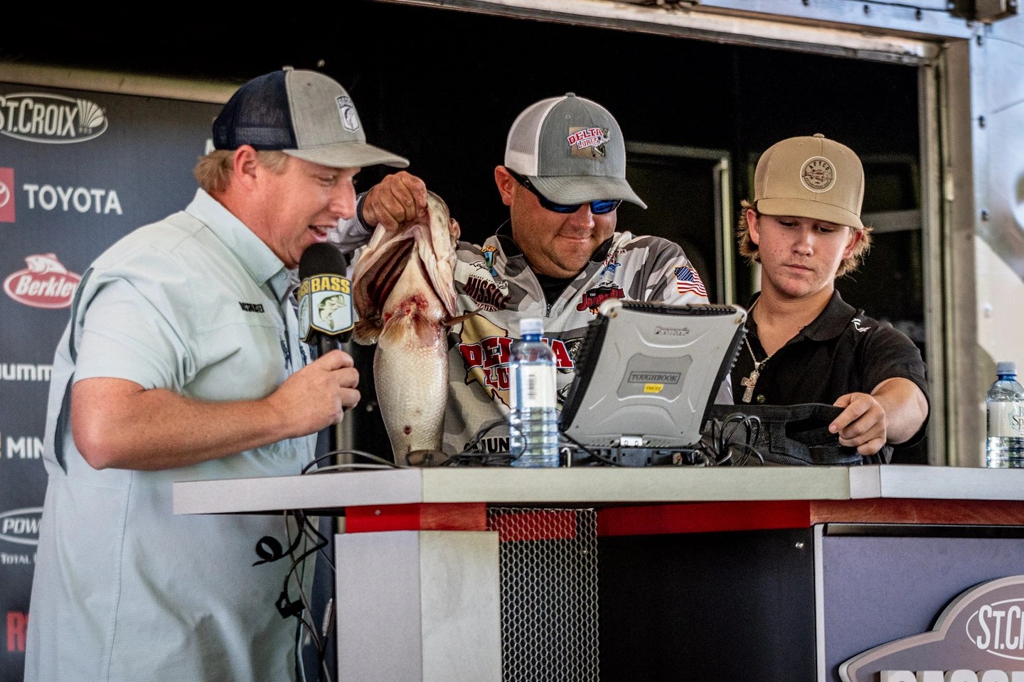 Latuso shattered that personal best yesterday by landing an astounding 31-pound, 4-ounce bag, which included a 9-13 and a 9-11, by far the two biggest bass that have crossed the stage this week. Those two fish were the first two bites of the day, although they came hours apart, and are the second and third biggest bass Latuso has ever landed.