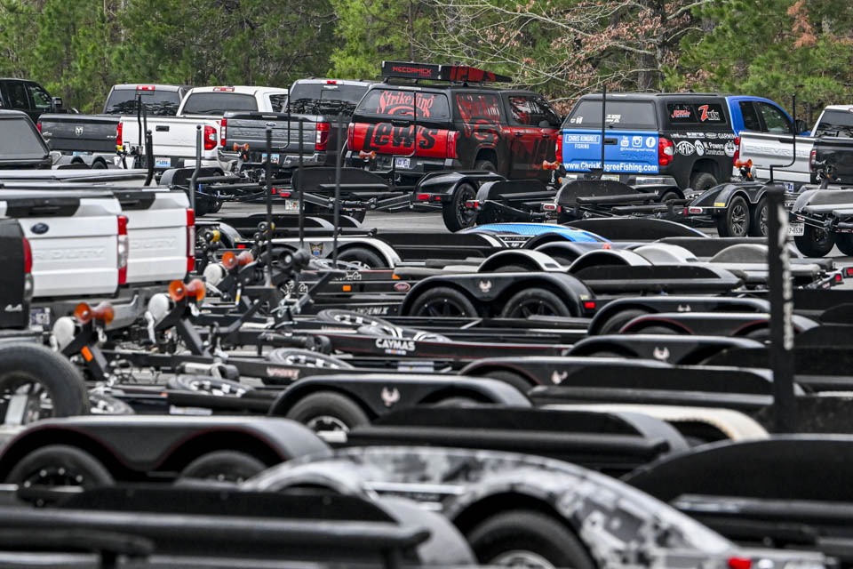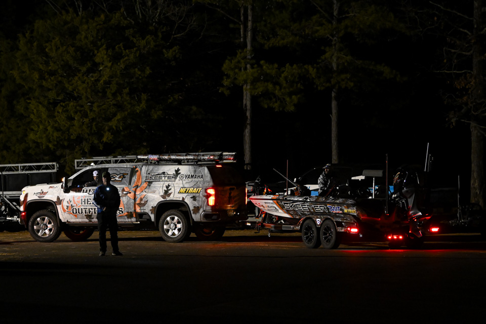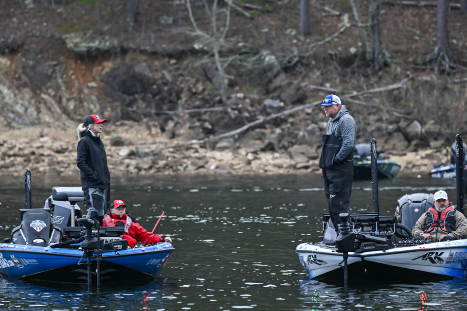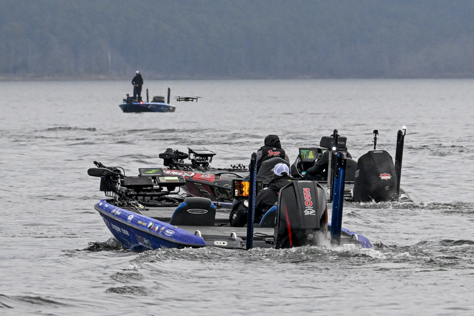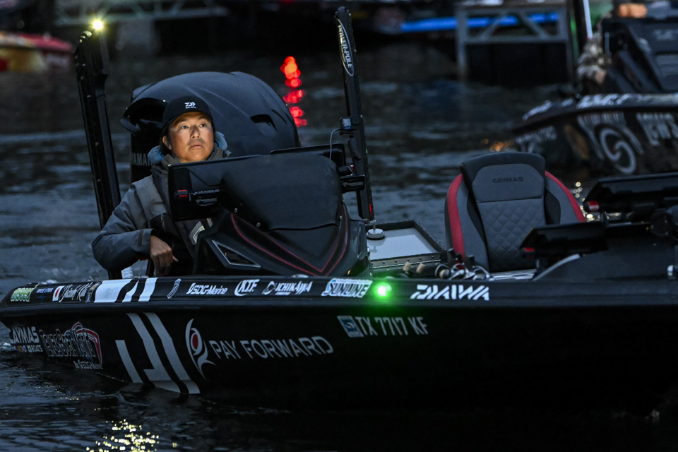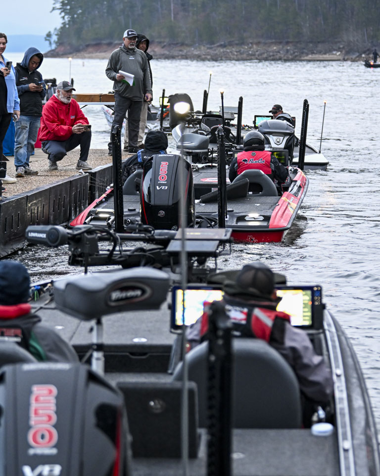 At dawn, Lake Ouachita awakens with anglers blasting off on Day 2 of the St. Croix Bassmaster Open at Lake Ouachita presented by SEVIIN.