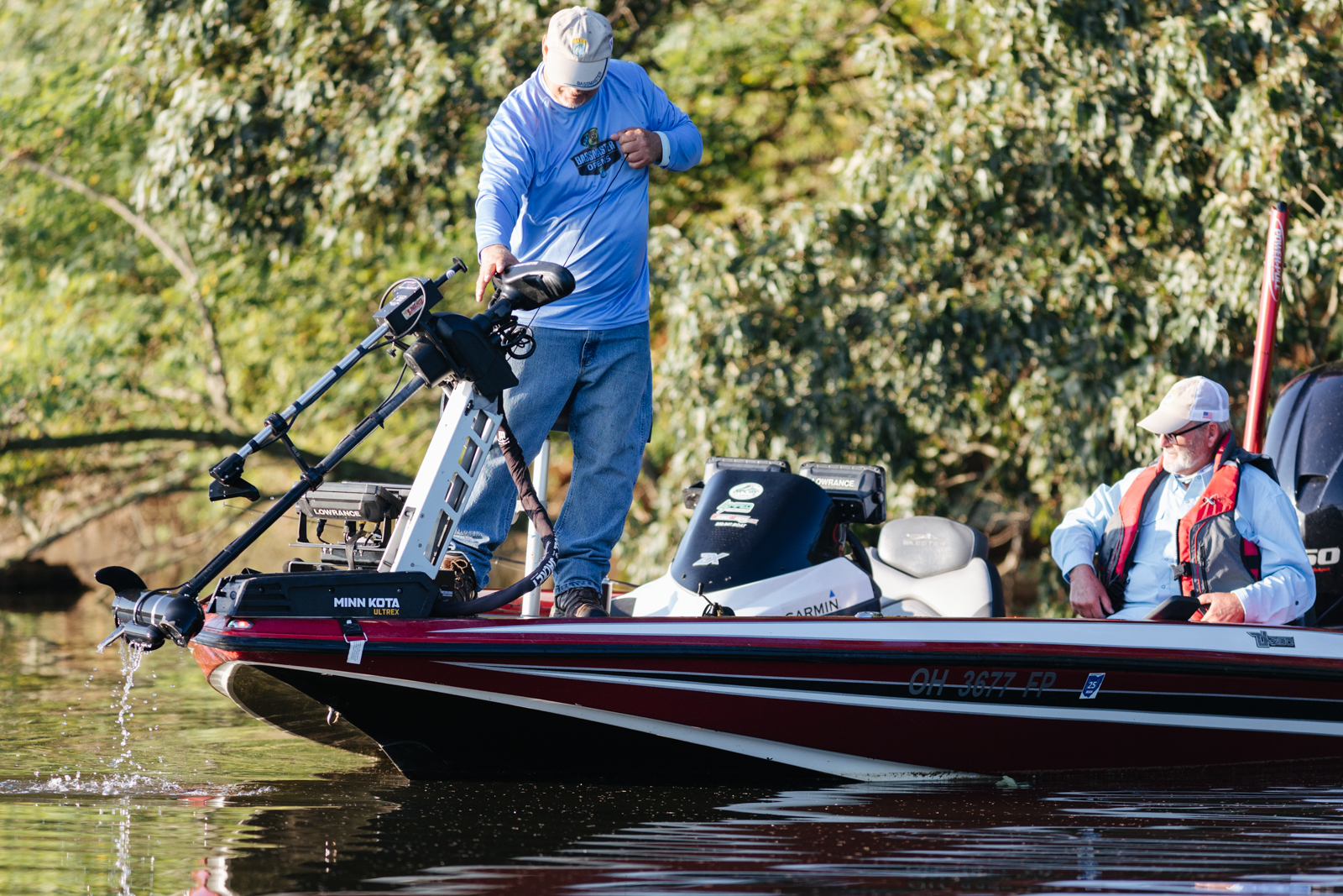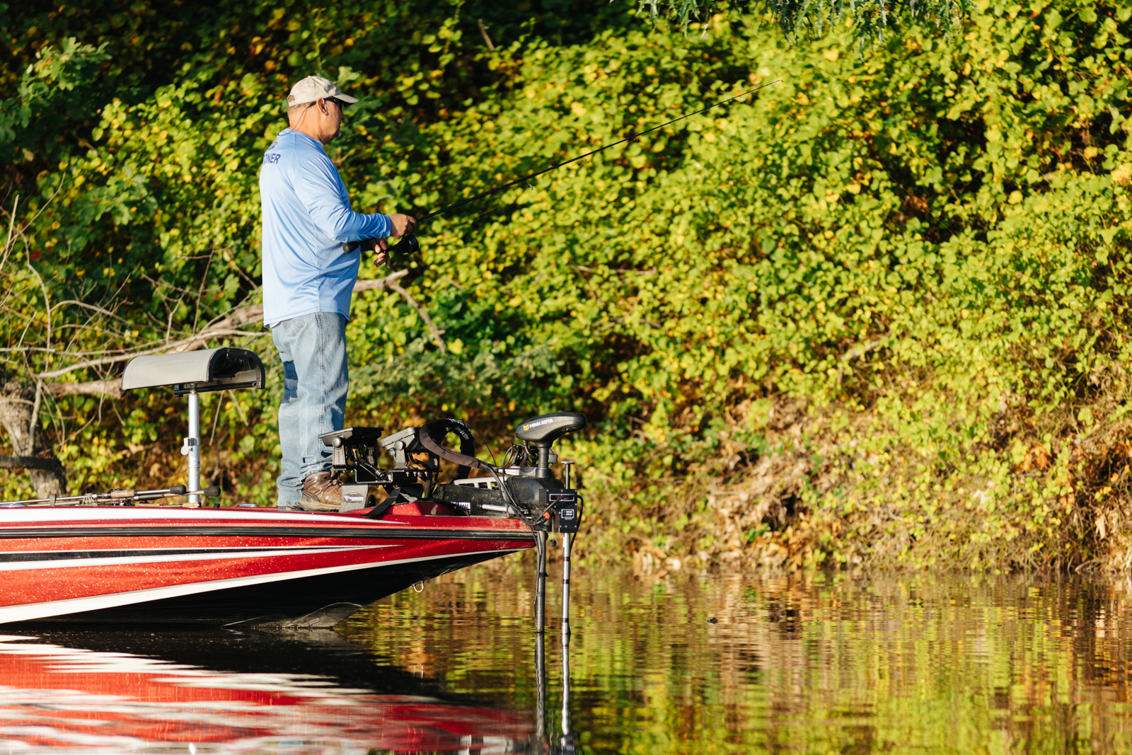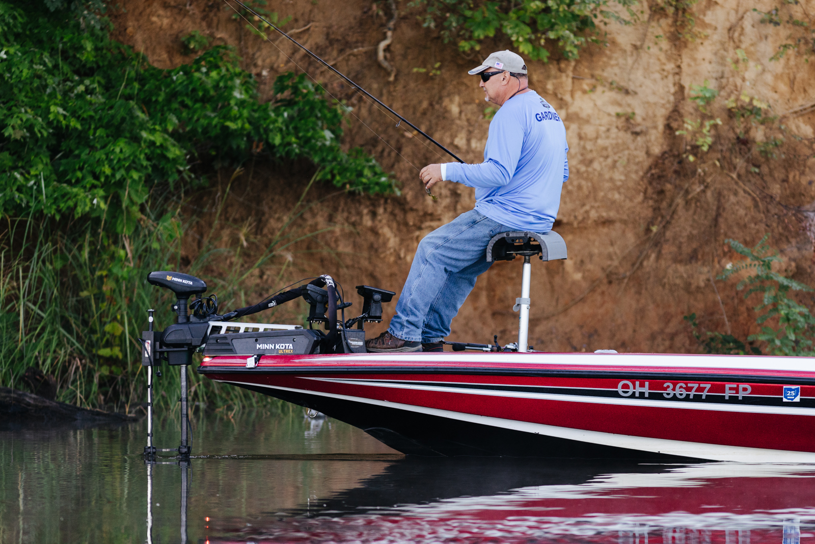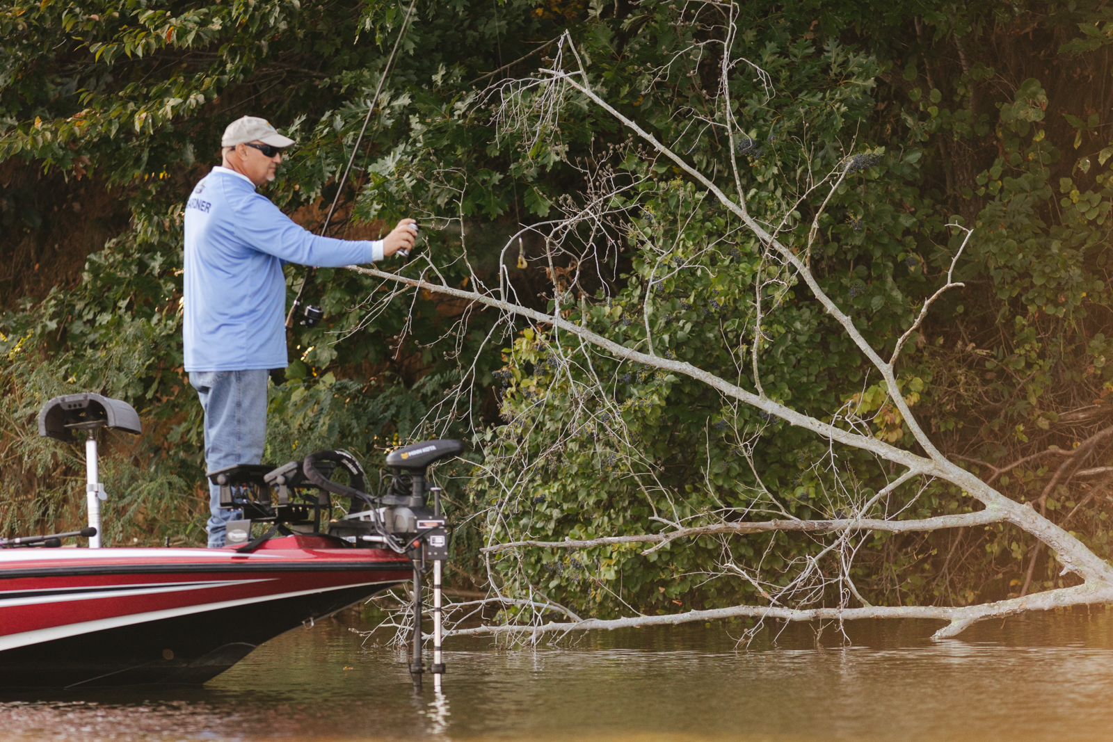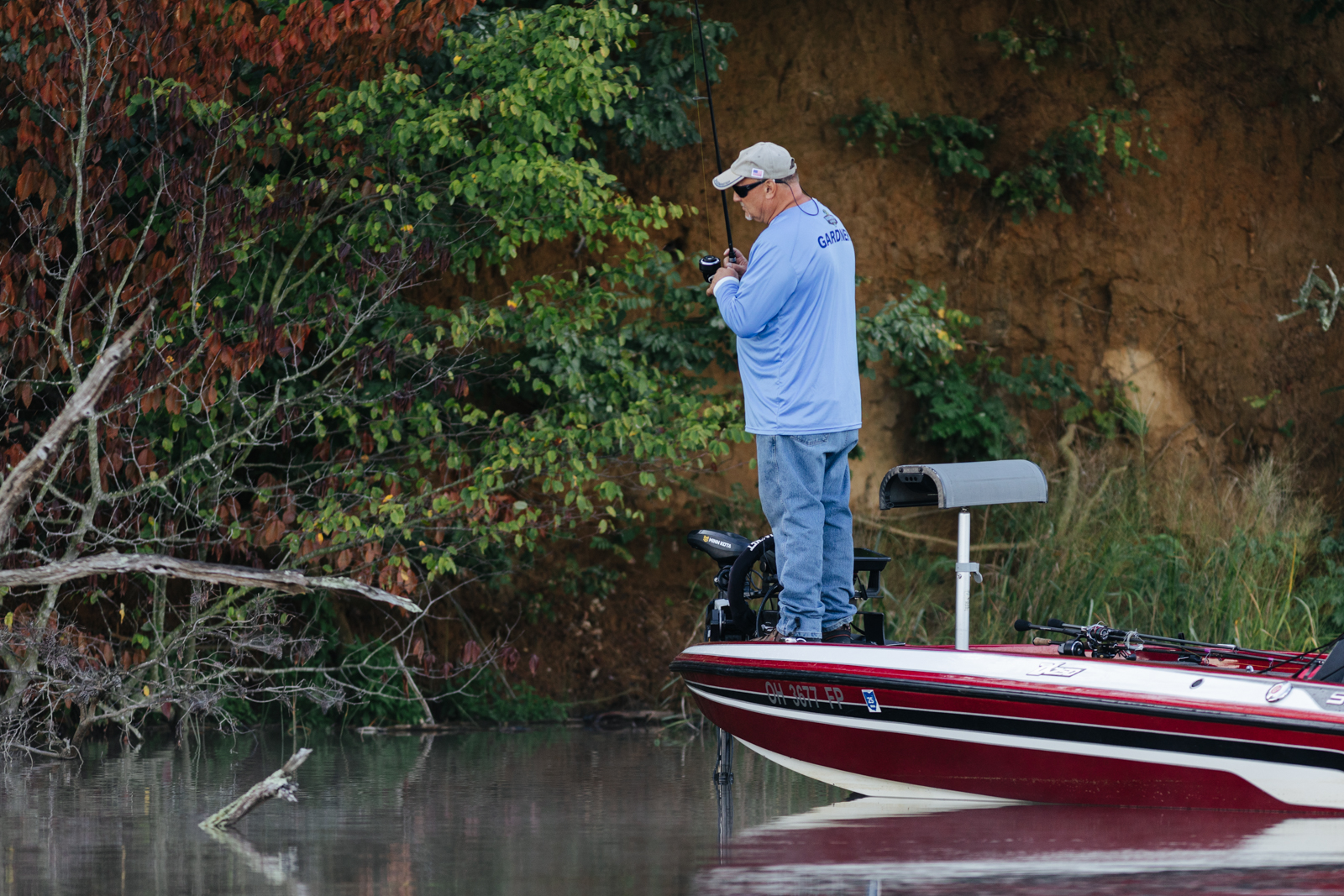 Leading into Day Two of the 2022 St. Croix Bassmaster Northern Open, Jody Gardner, begins the morning flipping wood structure tight along the bank.
