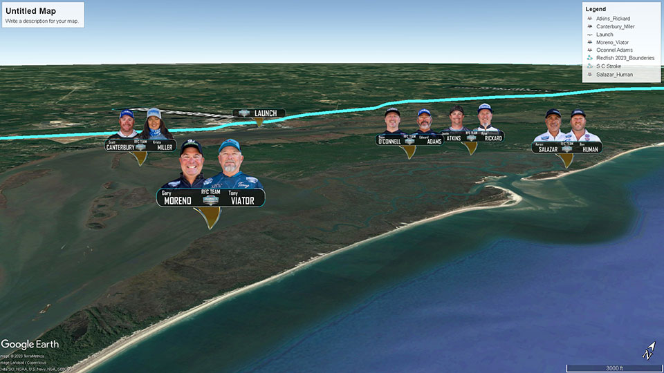 Only one angler, Charleston’s Ben Powers, is from the region, and Capt. Ryan Rickard has fished the area six or seven times. None of the others had ever been near Georgetown. To prepare, most searched for potential redfish haunts on GoogleEarth maps.