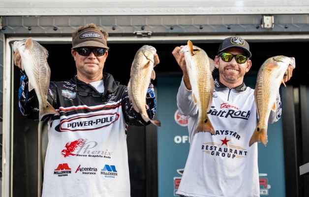 Second place Glenn Vann and Thomas Barlow are also working protected areas. They’re hunting schools of reds around oyster bars within a marshy maze.