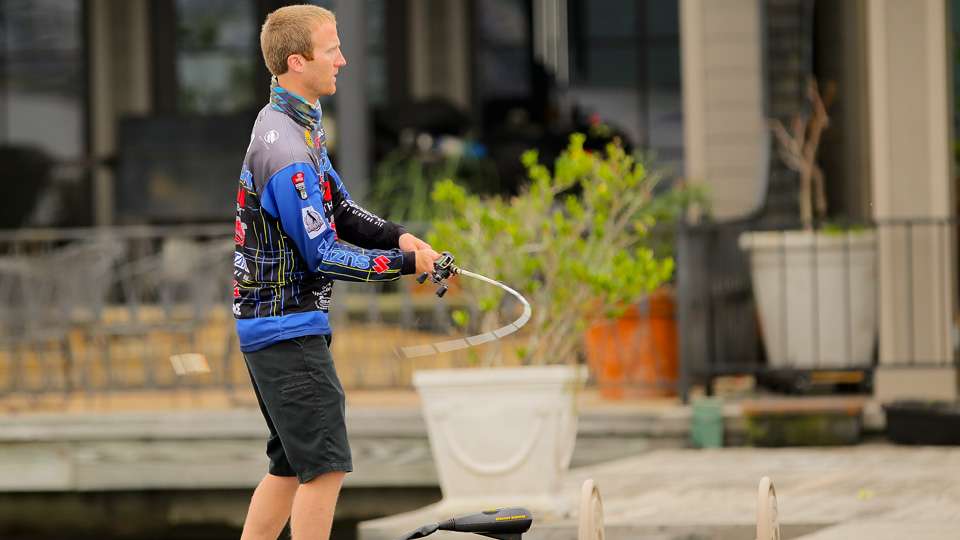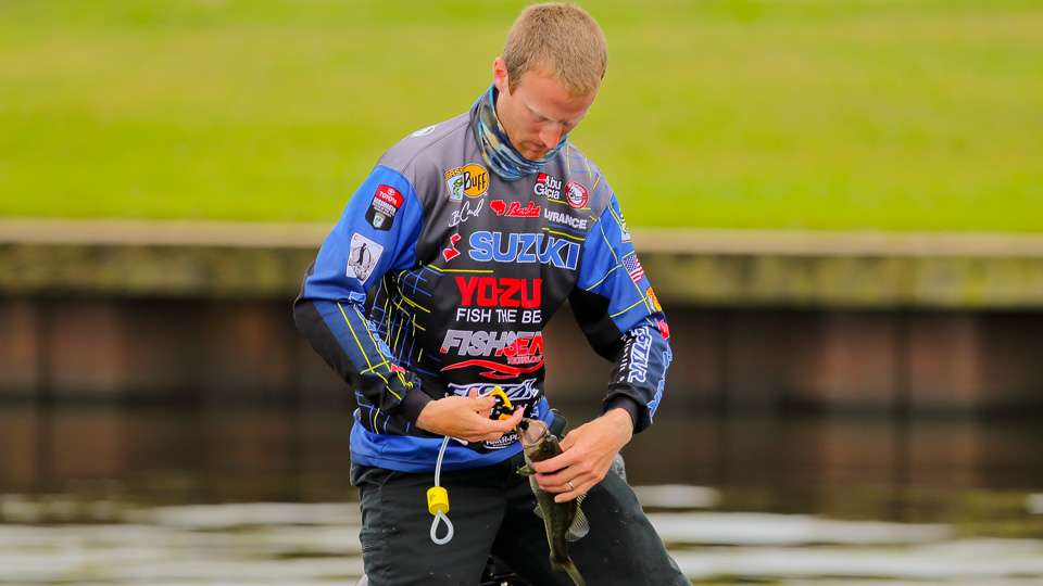 Day 1 leader Brandon Card has a busy morning on Day 2 of the Academy Sports + Outdoors Bassmaster Elite at Ross Barnett.