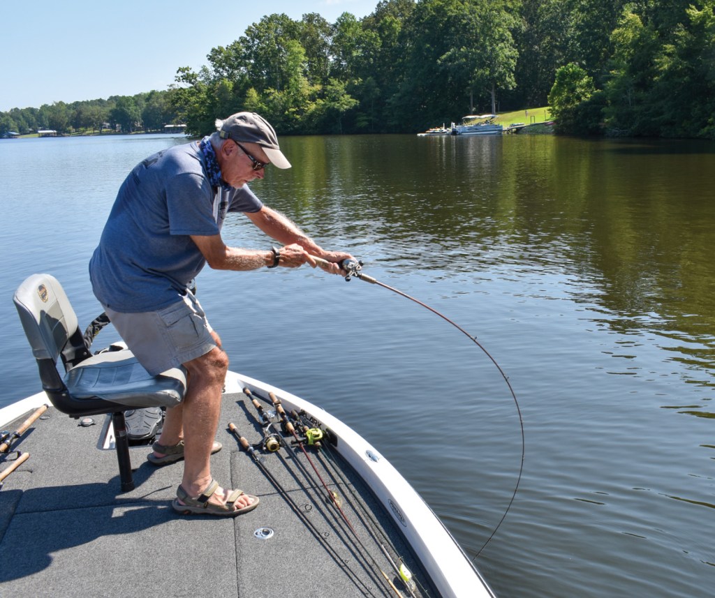 “I like to crank. That’s my favorite thing in the summer,” he says. “I think fish will be on points or just off points — away from the bank. They ought to be around midlake structure.”
