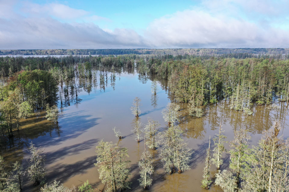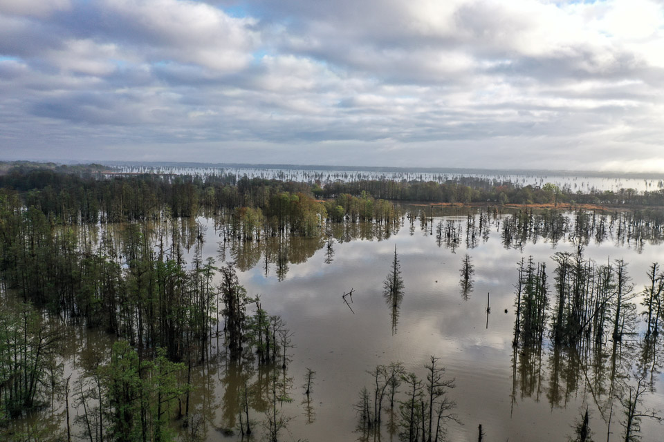 Get a bird's-eye view of Swamphole Swamp in Lake Marion, a gnarly maze of cypress that is part of the playing field for the 2022 Guaranteed Rate Bassmaster Elite at Santee Cooper Lakes.