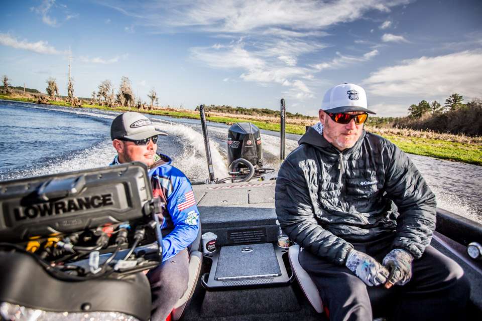 After having the St. Johns Bassmaster Elite event canceled for the second day in a row due to high winds, Tyler Rivet and Hank Cherry decided to fish Rodman Reservoir.  This is a very unique body of water that is drawn down all the way to the original creek channel during the winter.  Tyler caught some quality fish by punching the vegetation.  Cherry caught more numbers on a squarebill and jerk bait; but the sizes were much smaller that Tyler’s fish.
