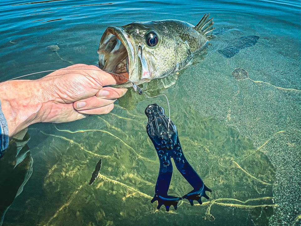 “Most soft plastic frogs sink when stopped over an open hole in vegetation.” Nania said.
