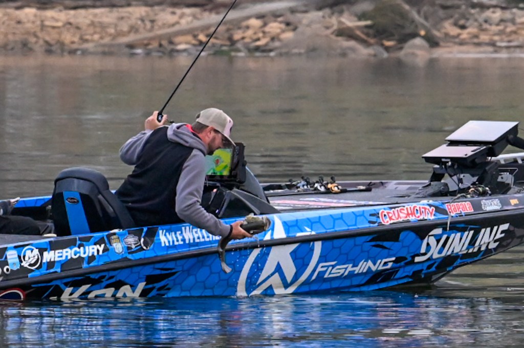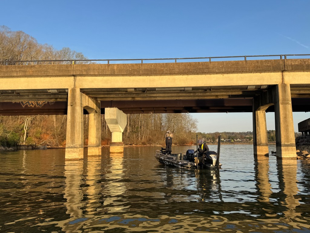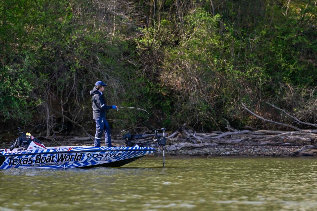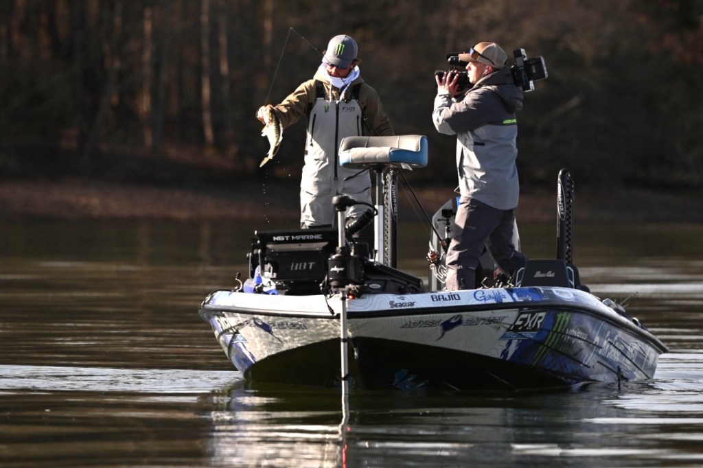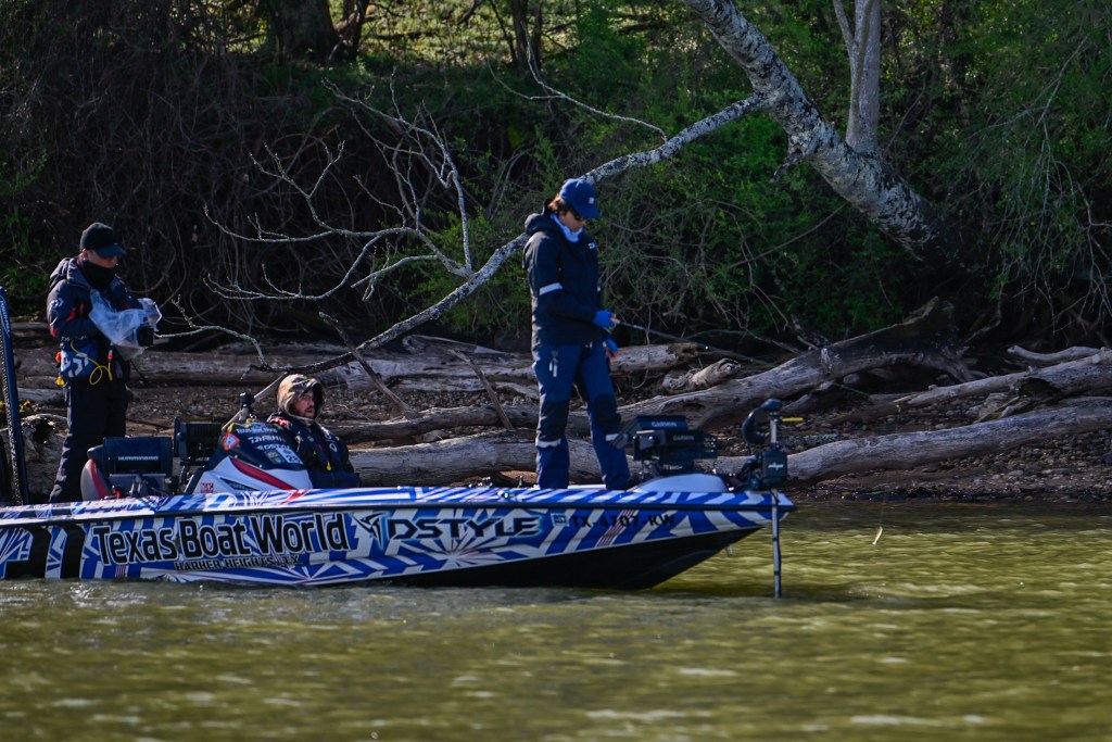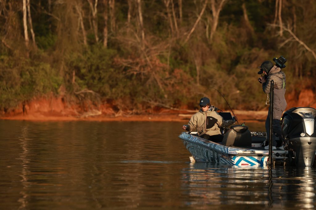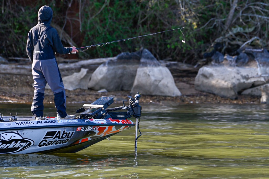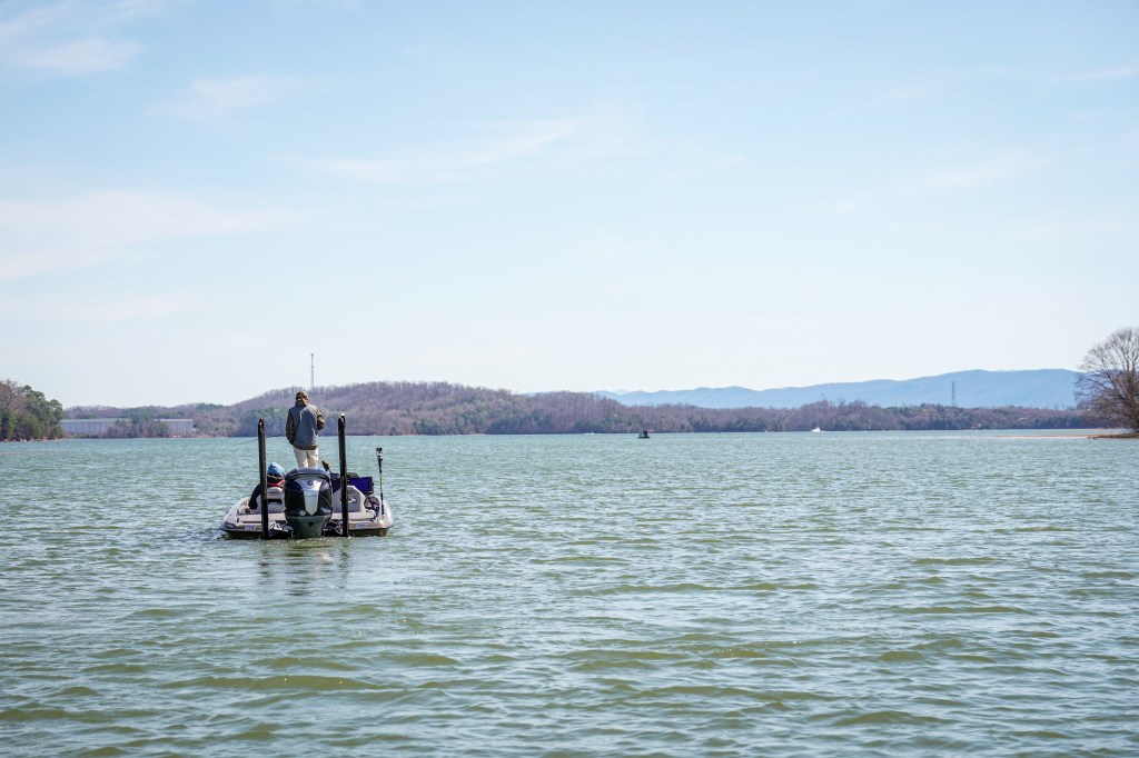 9:26 a.m. — Photographer Chase Sansom followed Easton Fothergill 47 minutes to his first spot in Tellico. “I’ve got 2 small keepers this morning, but I broke a fish off right off the rip this morning that I think was a 4 pounder,” Fothergill reported. He is sticking shallow and plans to get a good bag put together before he pulls back offshore to go smallmouth hunting.