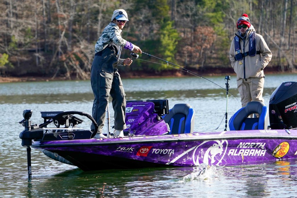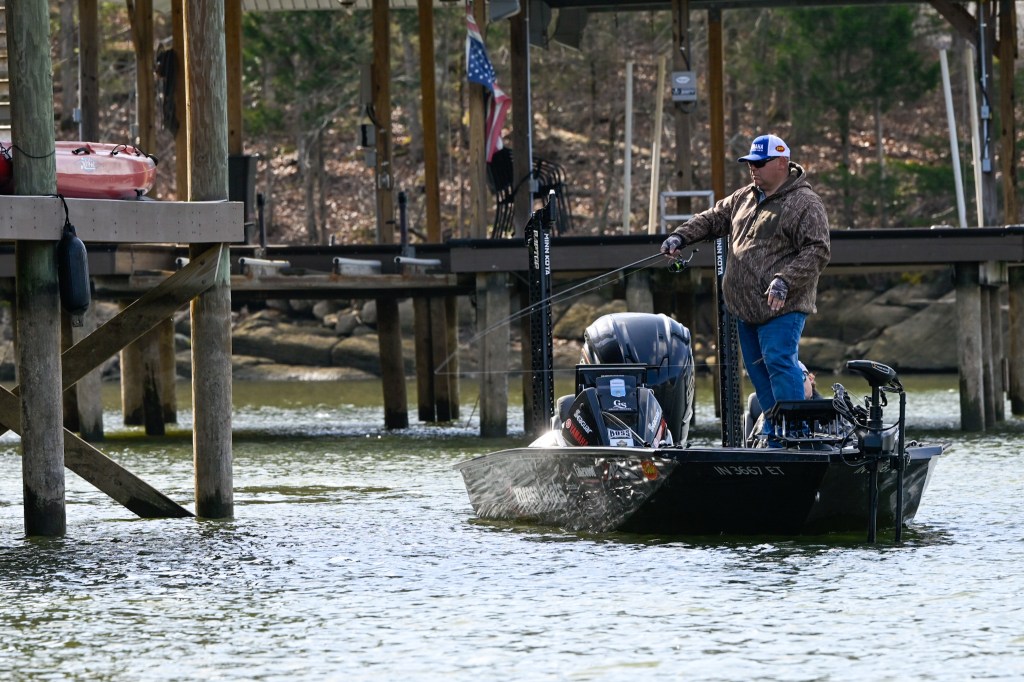 12:05 p.m. — Jordan Lee is focusing on clay points and pocket mouths off the main channel on Loudoun. He’s caught a few small ones on a jerkbait but overall Lee says it’s been tough on him all week. He’s keeping on the move and covering a bunch of water.
