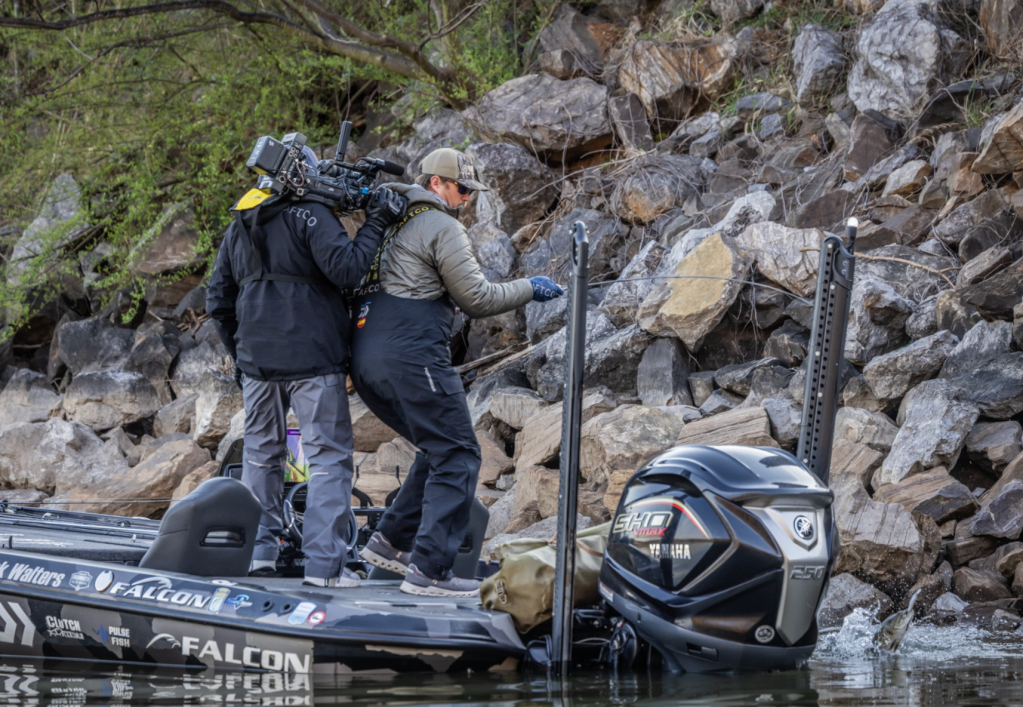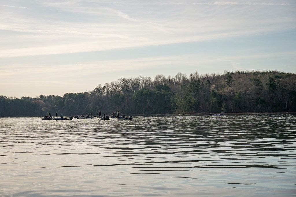9:10 a.m. — Photographer Chase Sansom reports that Easton Fothergill and Trey McKinney are fishing side by side this morning in Tellico and they’ve brought a large flotilla with them. He estimated nearly 20 boats are there. That’s big for this era, but not as big as we might’ve seen in the pre-Live era.