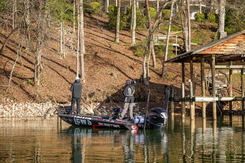 10:30 a.m. — On the main Tennessee River channel Andy Crawford found Alex Redwine targeting near-shore structure. He told Andy the Day 1 plan is to begin in Loudon but not for long. “I’m looking for a spot where I can catch one or two, and then I’ll head to Tellico unless I stop and it blows up.”