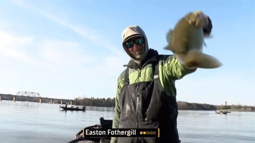 9:45 a.m. — Easton Fothergill picked up where he left off – calling his shot on a 4-8 smallmouth.