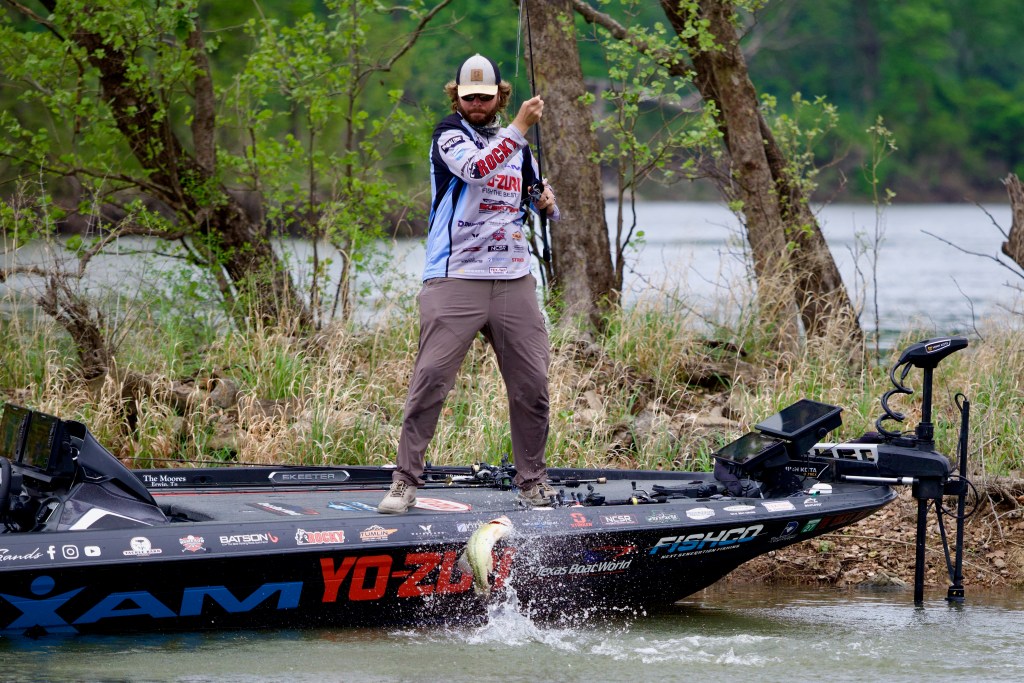 10:43 a.m. — Shane Durrance reports that JT Thompkins just culled for his first time this morning with a 3-pound largemouth. He started on a shad spawn where he expected to run into a kicker that never came. He’s at around 10 pounds and needs to keep on culling.