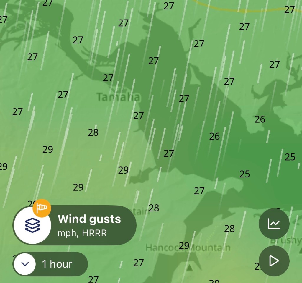 “I would guess 3 foot waves are pretty consistent,” he said. “A lot of guys here in Vian Creek are going to need to leave a bit early to navigate through the waves and make it back to the locks on time. We may see some torn up equipment when they return this afternoon.”