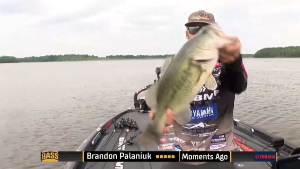 1:31 p.m. — Brandon Palaniuk just caught a near 5-pounder that helped him make a massive cull, going from an also-ran up into the top 10. Two days in a row he’s had a fish take the words out of his mouth as he semi-pleaded for a big bite. That’s a superpower you can’t buy.