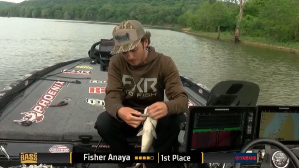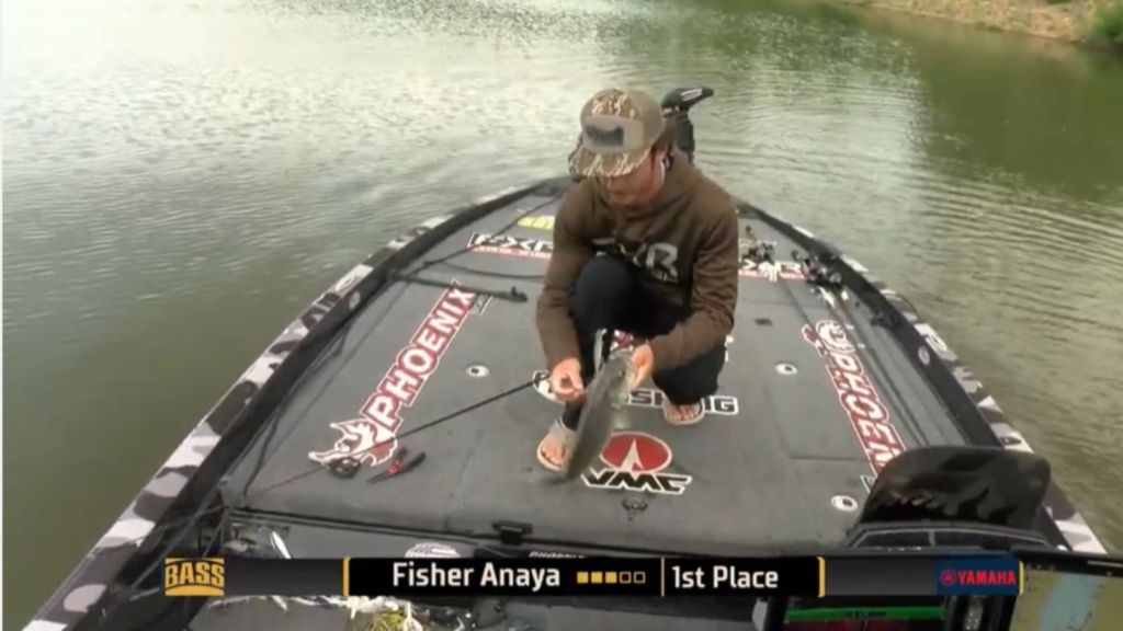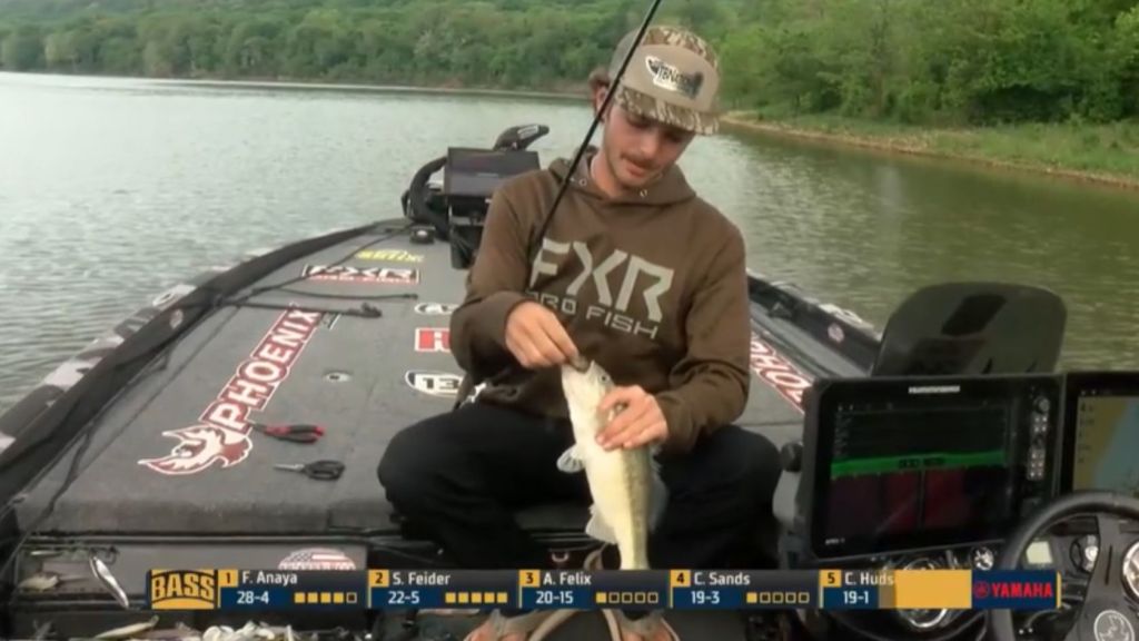 7:56 a.m. — Anaya’s fourth fish is a 2-pounder that likely puts him inside the cut. “He’s about one good one away from not locking through,” Mark Zona commented.