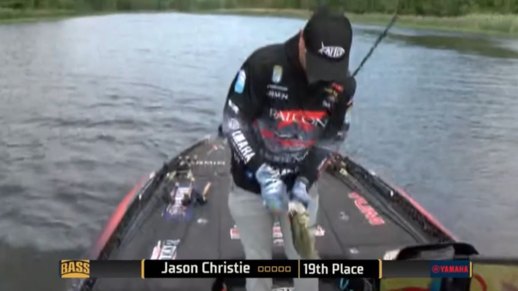 12:46 p.m. — Jason Christie, who had dropped out of the top 10, has gone on a mini-tear. One bass missed his buzzbait, he pitched another lure back in and hooked up. He’s convinced it wasn’t the same fish, though. The one he landed culled out a 1-8, but he was certain that he’d seen a giant in the first instance. He then caught a second decent keeper, but still not the giant. "I still think there's another one there that's 6 or 7 pounds," he said.