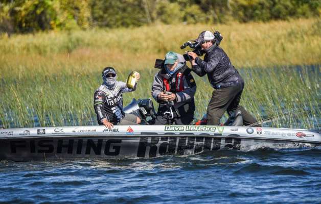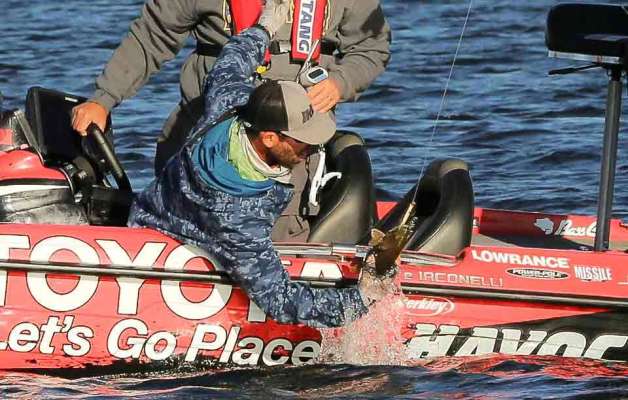 Ish Monroe boated a 5-1 smallmouth and gave him an almost 3 pound upgrade. This put him in control of his matchup with Mike Iaconelli with just a little bit...