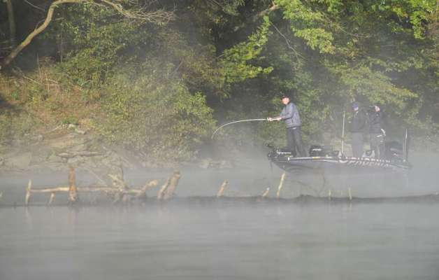 Ray Hanselman just made up a litttle ground on Adrian Avena. Hanselman caught a 12 ounce bass, bringing his total for two fish to 2-3. Avena has 3-10. Ounces matter...